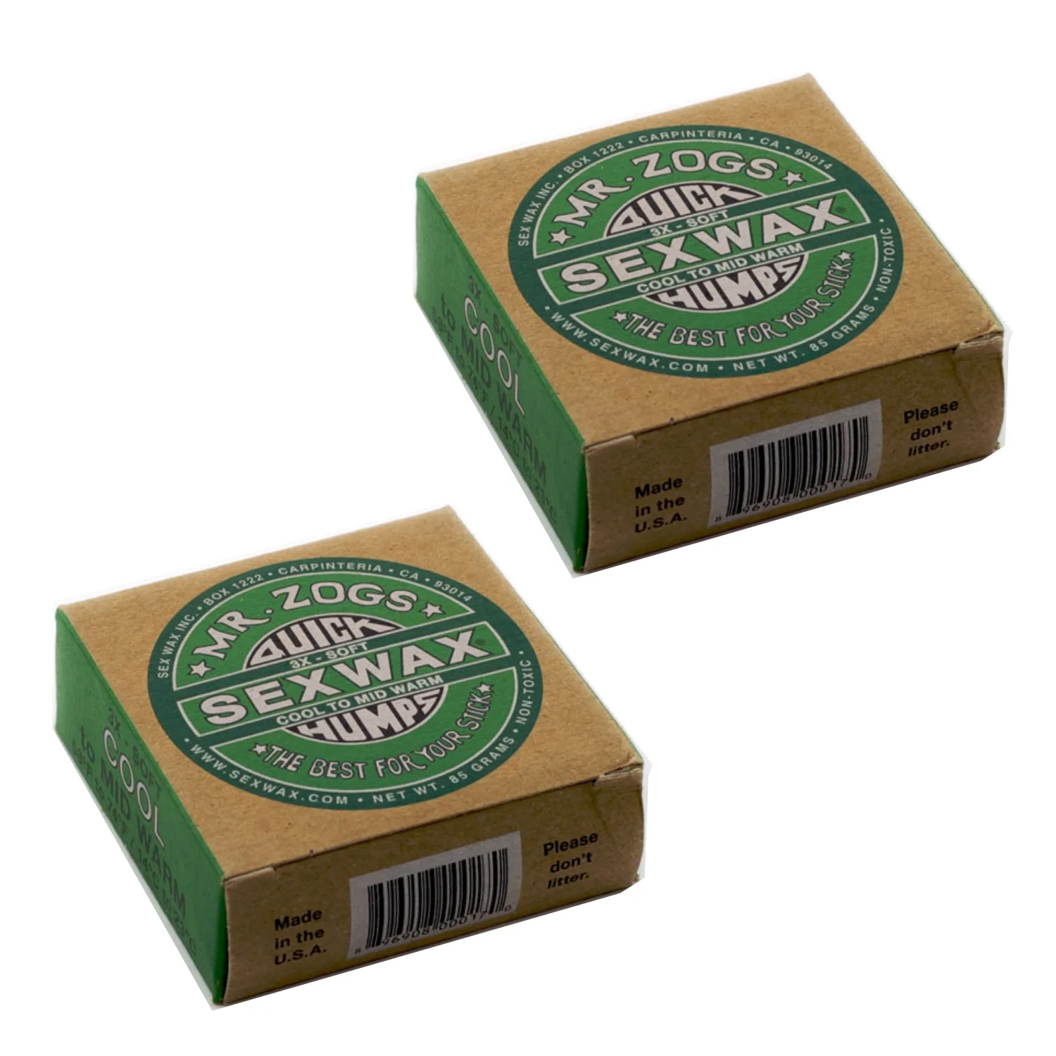 Sexwax Quick Humps surfboard wax formulas are the "go to" choice for professional and experienced surfers around the world. You couldn't go wrong with this stuff. Developed in the early 1970's in Goleta, CA, by a chemist named Nate Skinner at Zog's Surf Shop, this wax is time tested.